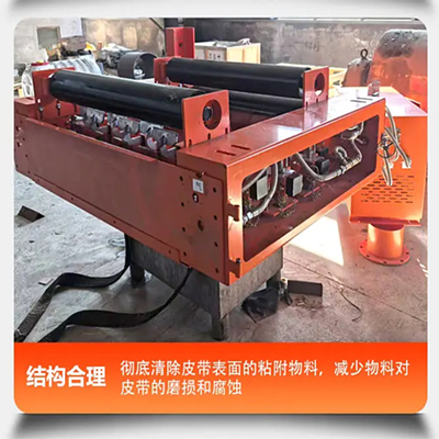 1.G效清潔:采用高壓水霧系統(tǒng),能有效軟化并清除輸送帶上粘附的物料,同時(shí)配備高壓氣刀干燥裝置,確保輸送帶表面干燥。