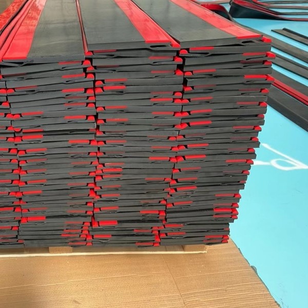 1. 防溢裙邊的主體部分為黑色,采用 橡膠和丁苯橡膠混煉而成,在保持挺括的基礎上增加彈性,使紅色的多防護密封條緊密的貼服在輸送帶上,甚至當多護系統達到使用即將磨損完后還能夠繼續履行防溢裙邊的防溢效果。