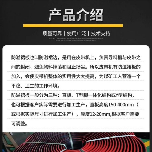 導料槽防溢裙板 密封擋煤膠板 T型防溢裙板 Y型防溢裙邊裙板 擋煤皮子