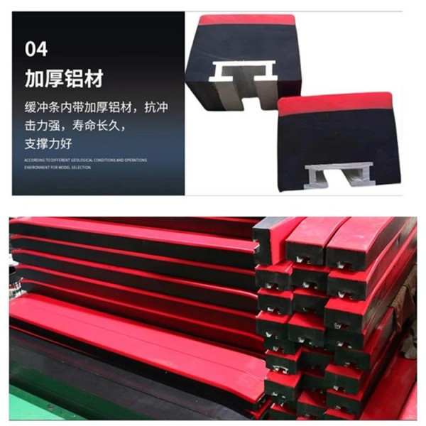 2.、緩沖條耐磨表層是由高分子聚氨酯材料制成,它具有高耐磨性、低摩擦系數(shù)和高抗沖擊韌性。