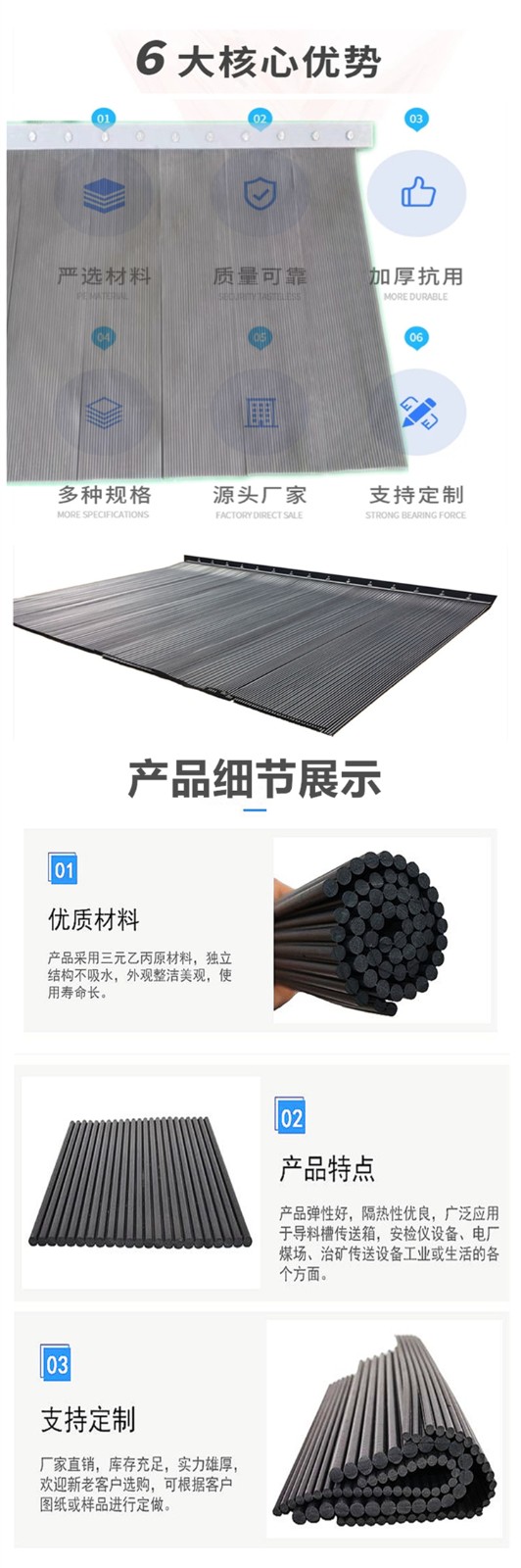 無(wú)動(dòng)力導(dǎo)料槽口抑塵密封橡膠簾 6mm膠條擋塵簾 美奐橡塑