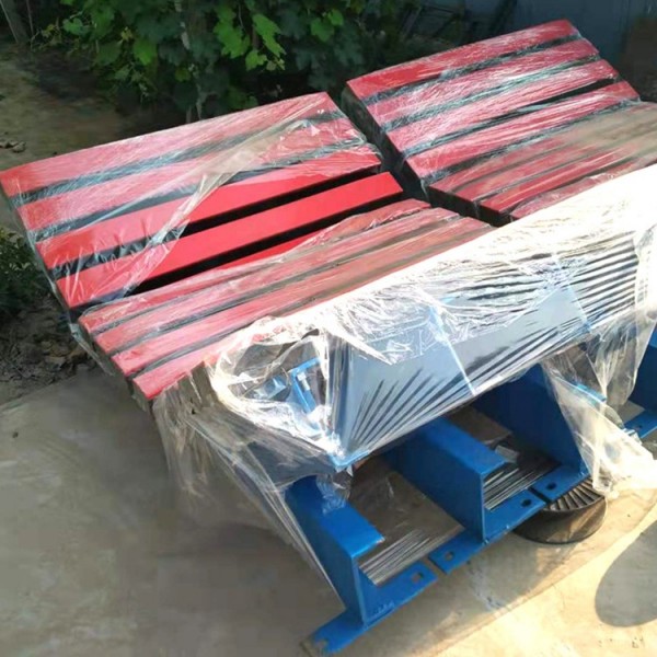 緩沖床作為緩沖托輥的替代產物,緩沖床上緩沖條與皮帶面與面的接觸,為帶式輸送機落料點提供全面的支撐。在落料點使用緩沖床可與導料槽配套結合使用,防止了落料點飛濺及散落。
