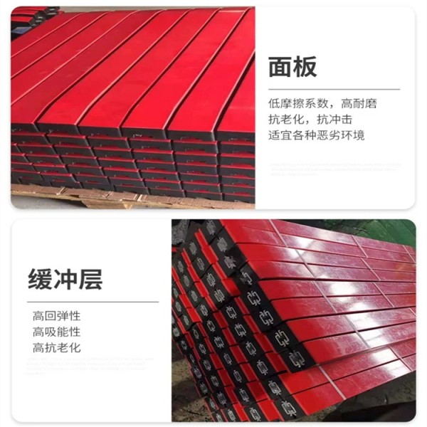 緩沖滑條的表面高分子板,與皮帶直接接觸,因此一定要光滑耐磨阻力小,這樣才能在保護皮帶的同時,皮帶不被磨損。